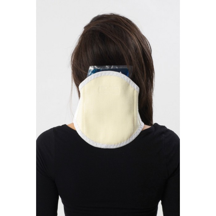 Termojelli boyunluk için 21 cm. eninde elastik kumaş kullanılmış olup her iki ucuna 5 mm.lik süngerin laminasyon ile kumaşla kaplanması ile elde edilmiş özel süngerli kumaş dikilmiştir. Boyunluğa welcrolu cep dikilmiş ve bu cebin içerisine 1 adet 9x12 cm. Termojel yerleştirilmiştir. ENDİKASYON: Romatizmal şikayetler, Fizik Tedavi, Spor kazaları ve Ameliyat sonrası bakımda soğuk veya sıcak olarak kullanılır.